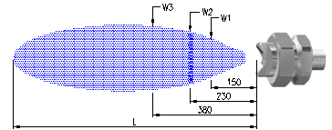 스프레이 거리 및 분포 범위 치수